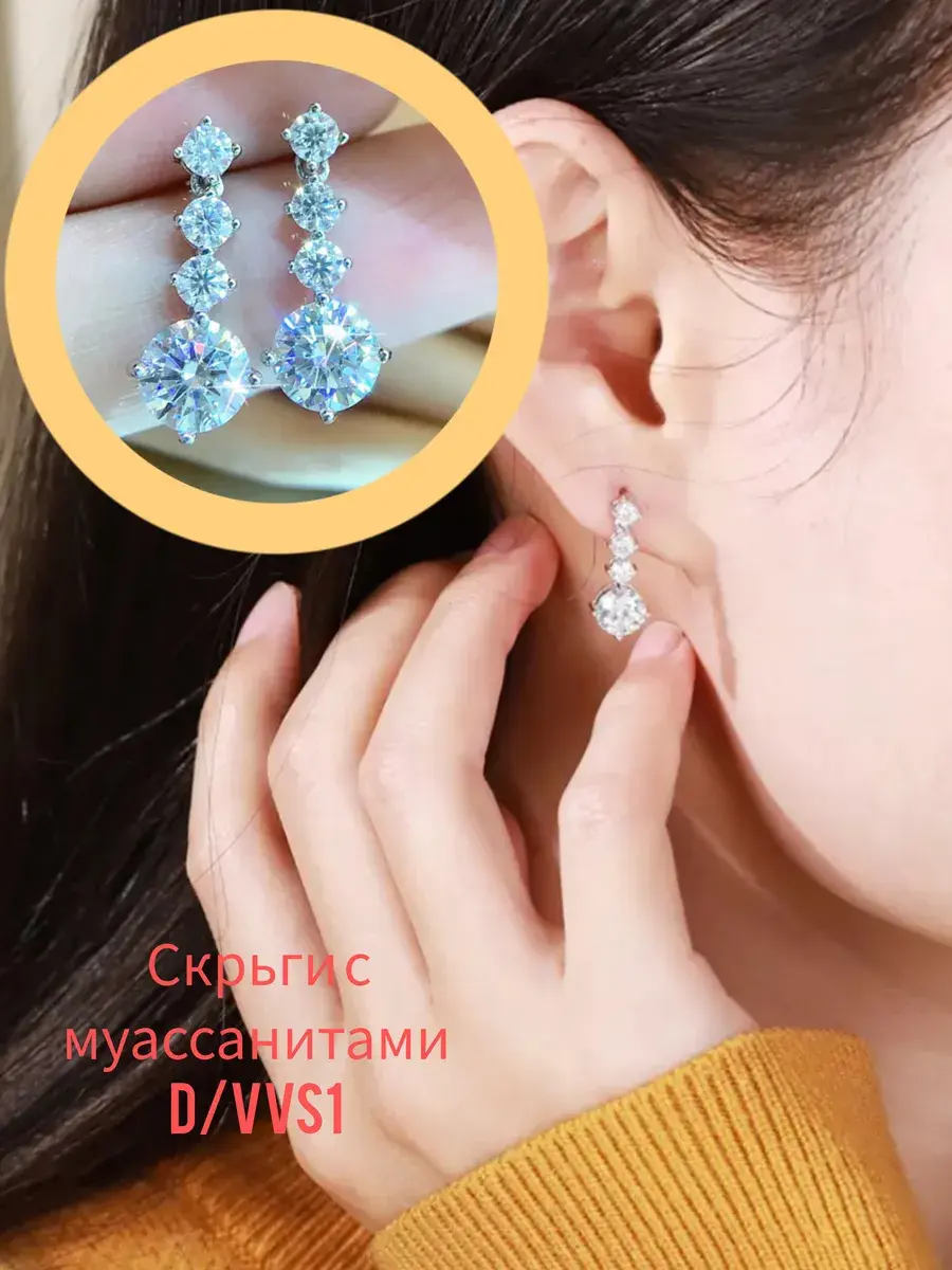 Представляем вам изысканные серьги-дорожки, которые станут настоящим украшением вашего образа. Эти серьги, выполненные из гипоаллергенного сплава с трёхслойным покрытием, не только красивы, но и комфортны для носки. Блеск муассанитов высшего качества D VVS один просто завораживает, создавая эффект ослепительной роскоши. Диамонд тестер определяет эти муассаниты как бриллианты, подчеркивая их высокое качество и сходство с драгоценными камнями. Муассанит — это прекрасный аналог бриллианта, который позволяет вам наслаждаться сиянием и блеском без лишних затрат. Легкие и элегантные серьги будут прекрасно смотреться как с вечерним платьем, так и с повседневной одеждой, добавляя вашему образу неповторимый шарм.